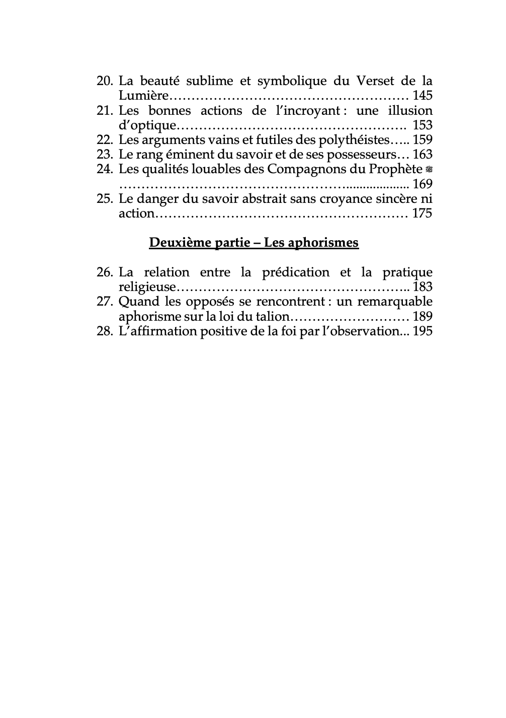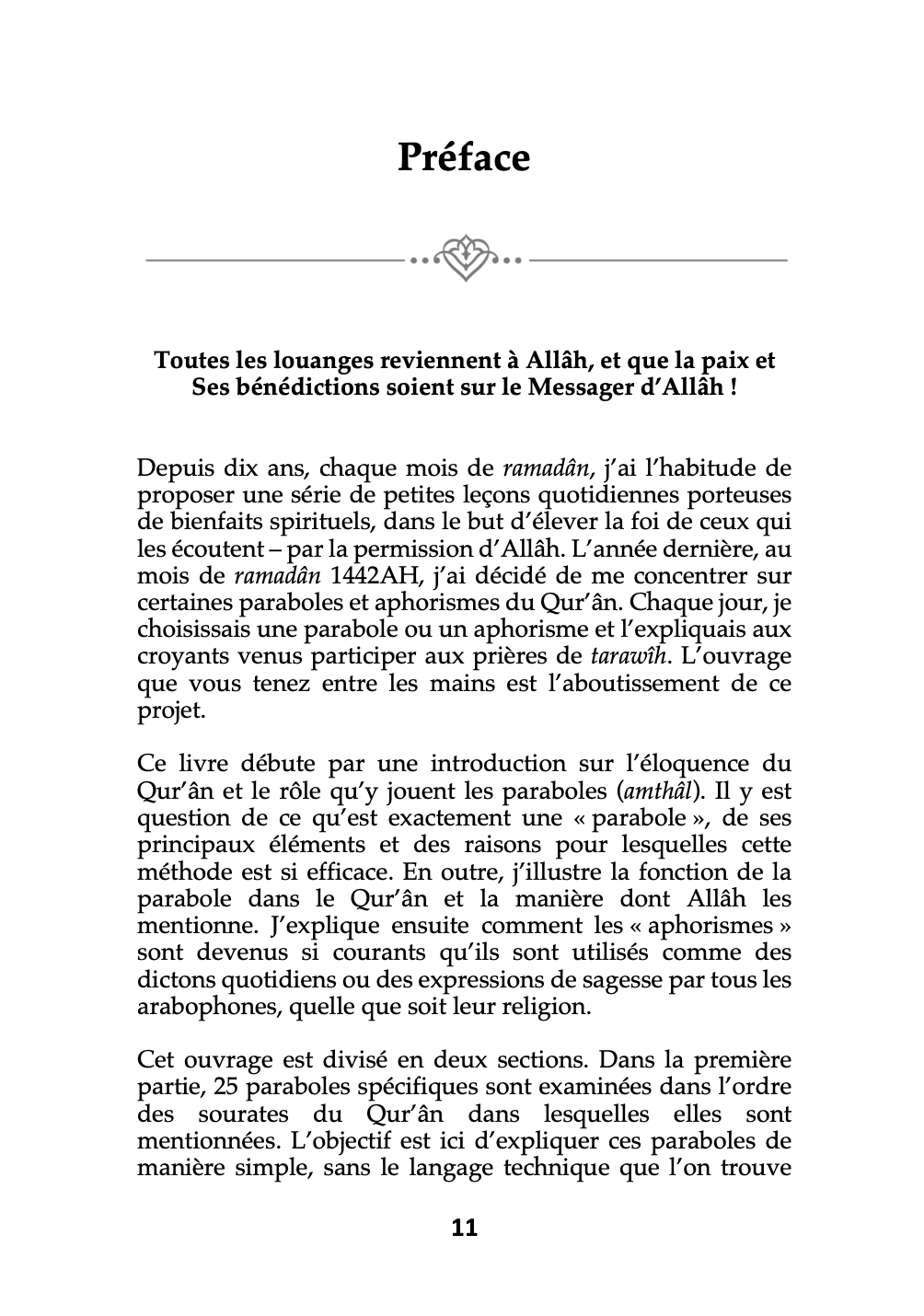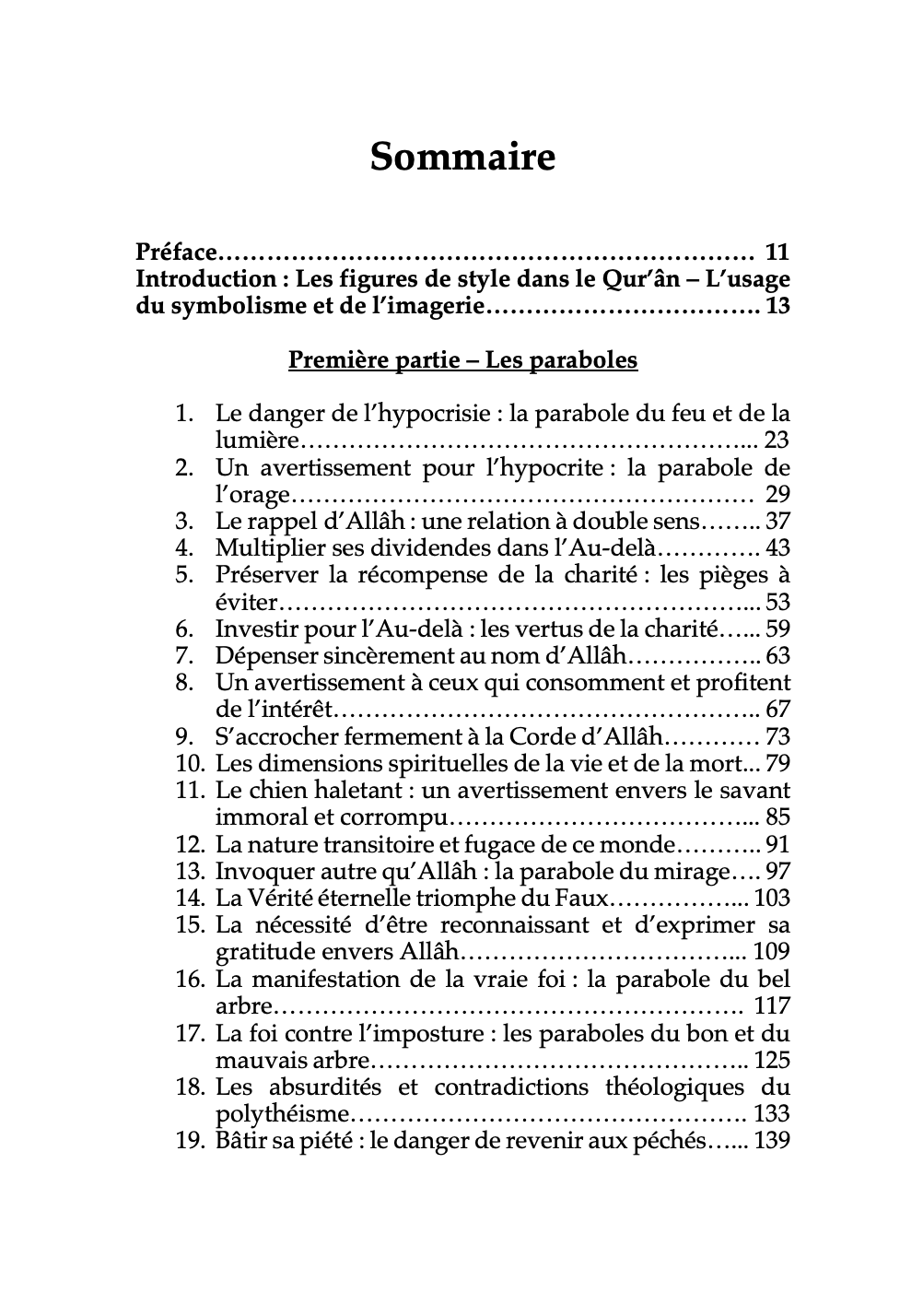 Allah dit dans le Qur’ân : « Nous avons proposé aux hommes toutes sortes de paraboles et d’exemples édifiants dans le Qur’ân afin de les amener à réfléchir. » Tel est précisément le but de ce livre, dans lequel l’auteur a sélectionné 28 paraboles et aphorismes du Qur’ân avant d’expliquer leur contexte et leur signification, afin que nous puissions les comprendre, les méditer et – surtout – changer nos vies à leur lumière.
