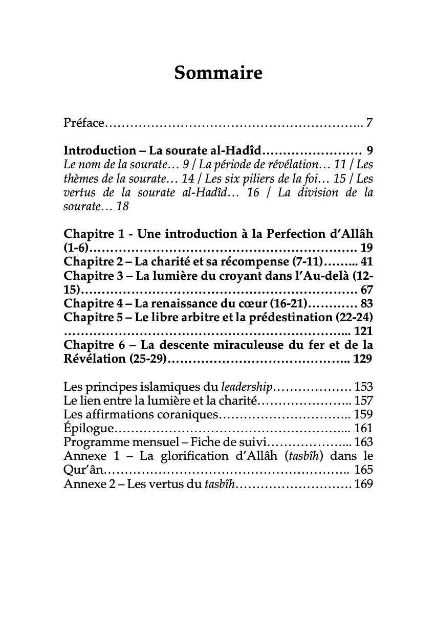 Par sa concision et sa portée, la sourate al-Hadîd permet à la fois d’étudier les fondements de l’Islâm, de renforcer la foi et de contribuer au développement spirituel du croyant, de purifier son cœur et de recentrer sa vision du monde : dans ce livre, l’auteur invite le lecteur à se plonger dans cette sagesse intemporelle !