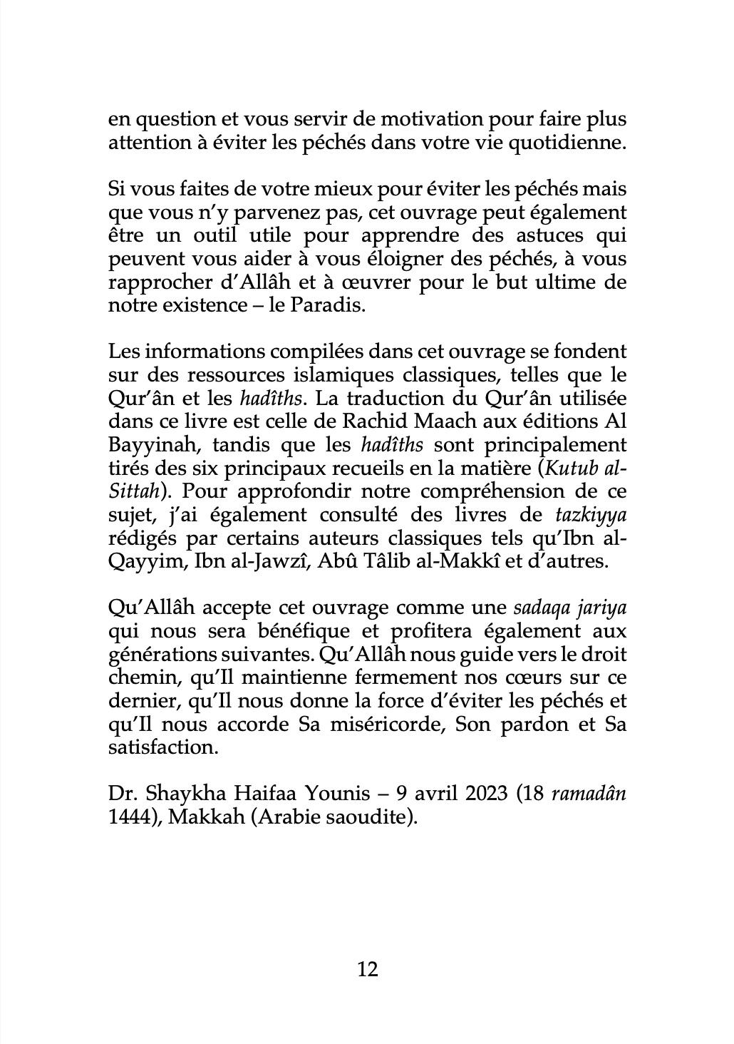Apprendre à connaître les péchés pour mieux les éviter est une expérience profonde qui ouvre les yeux du croyant et bouleverse son cœur et son esprit. Cet ouvrage est un rappel poignant qui cherche à encourager le lecteur à réexaminer sa vie et à accompagner l’auteure dans son voyage depuis le doute et l’incertitude vers la lumière de la connaissance, de la compréhension et de nouvelles perspectives sur Allâh, sur nous-mêmes et sur le temps que nous passons ici-bas !