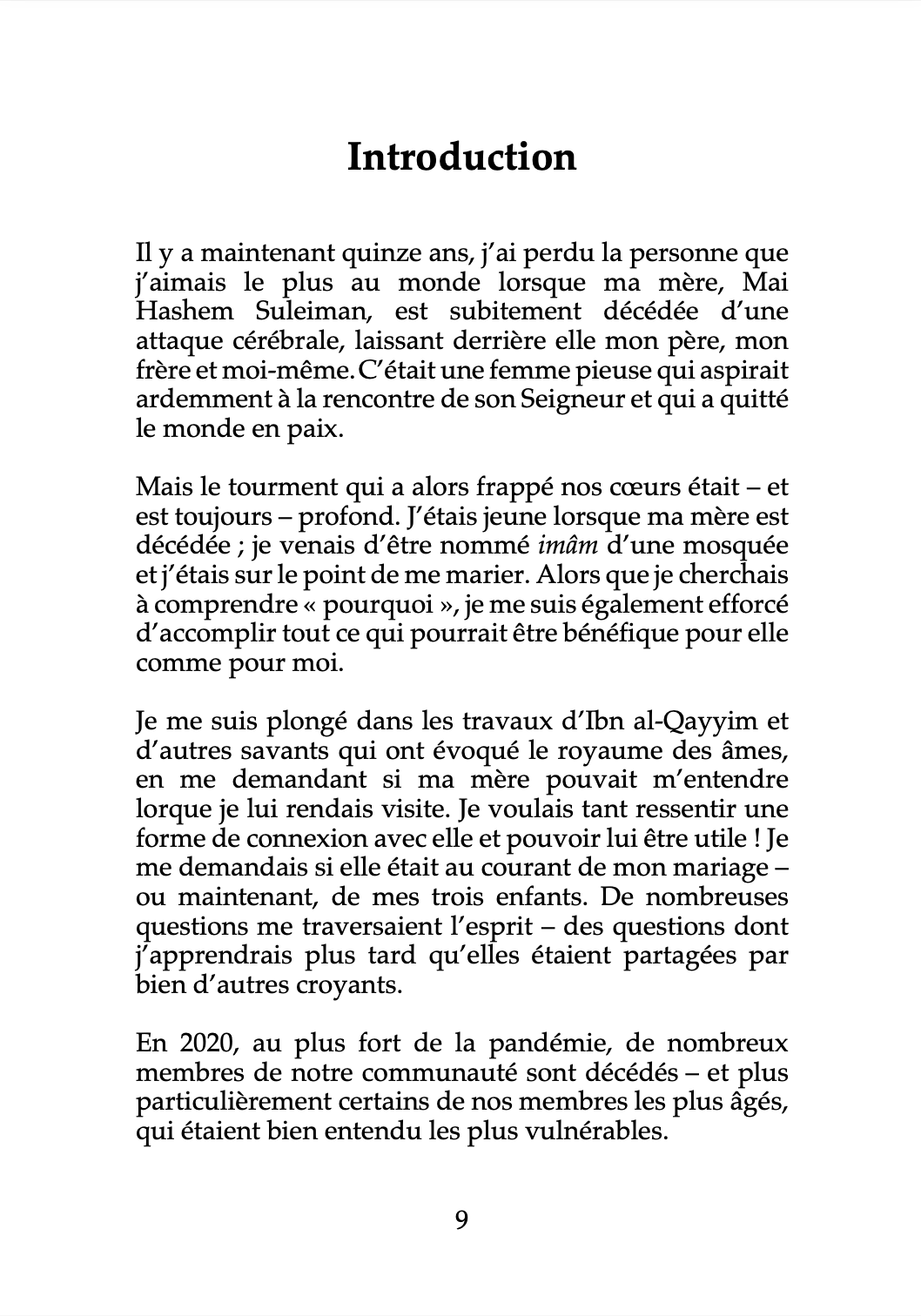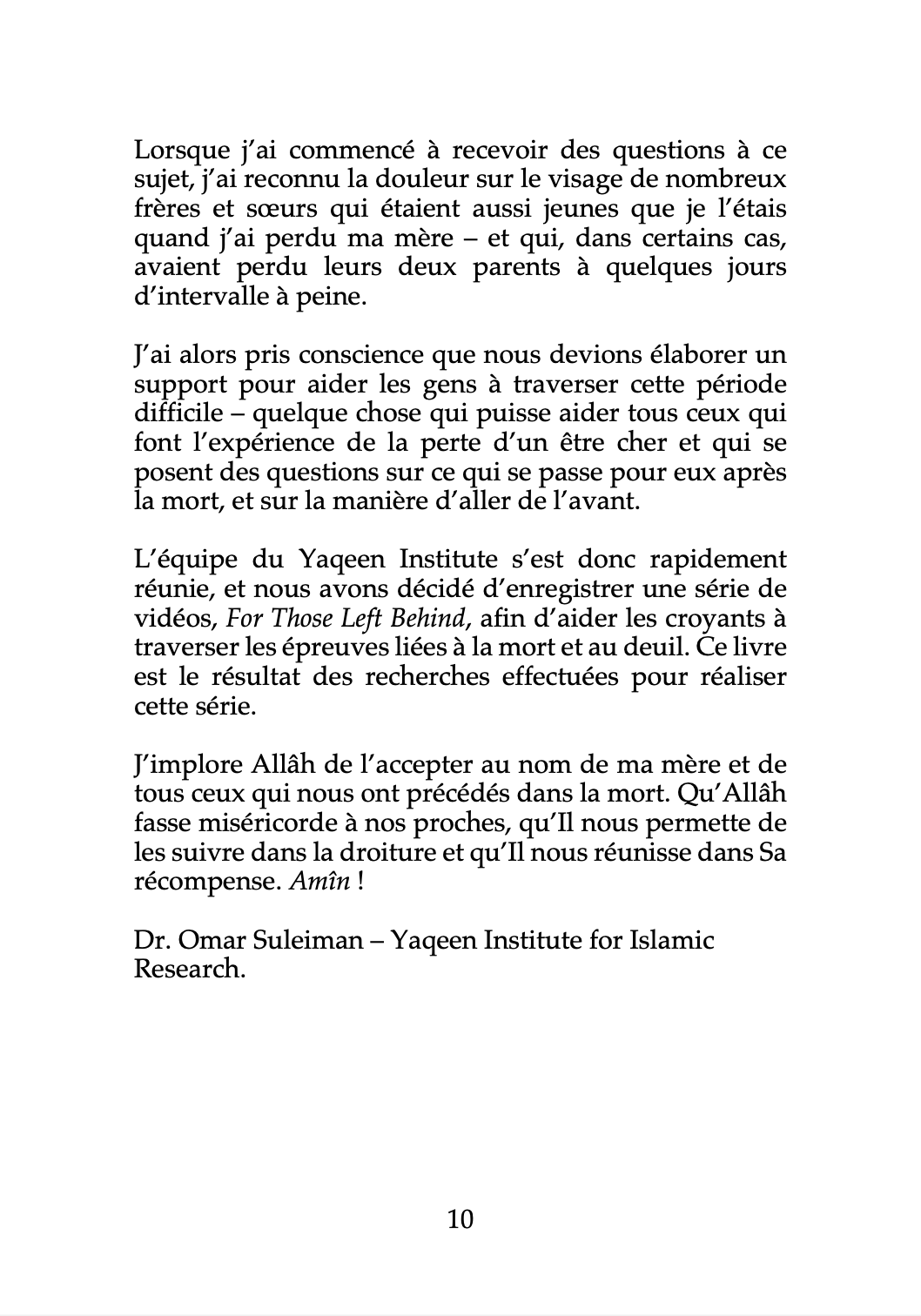 Dans ce livre dédié à ceux qui restent et aux familles affligées, l’auteur alterne conseils spirituels et exposé pratique des règles islamiques relatives à la mort et au deuil – qu’il s’agisse des meilleures du’âs à faire, d’interrogations sur le domaine de l’Au-delà ou des bonnes manières des condoléances.